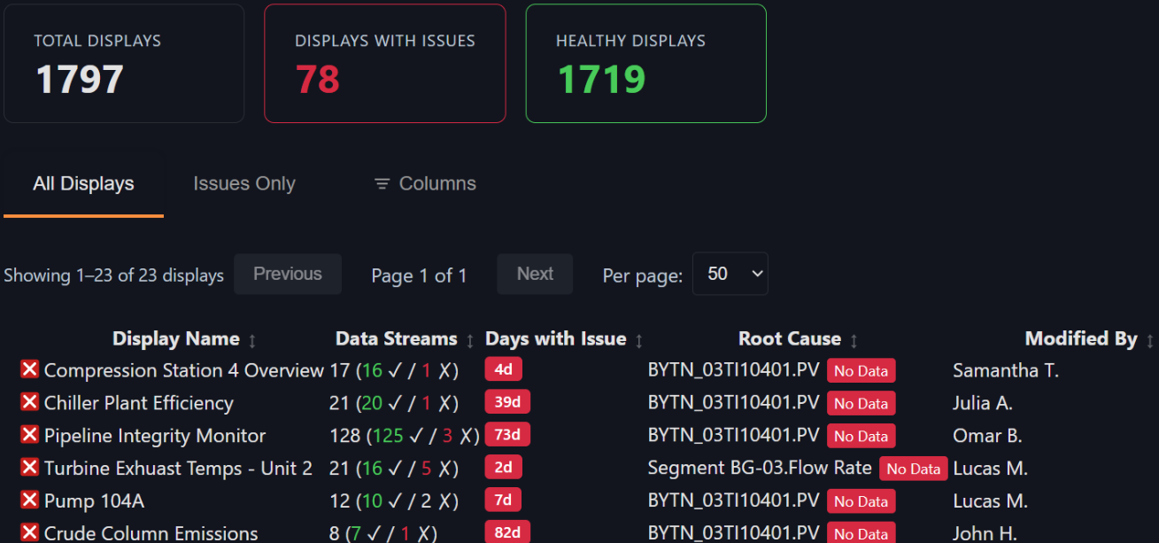 Engineers identify and resolve data issues faster instead of manually investigating PI Vision displays, freeing time for higher-value work.